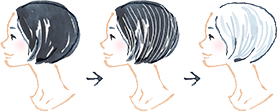 少しずつ白髪の割合を増やしたウィッグへと交換していただけます。