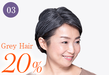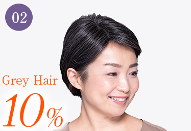 グレイの比率が高くても美しいスタイルに。地毛であればお悩みとなる白髪特有のウネりやかたさをカモフラージュできます。
